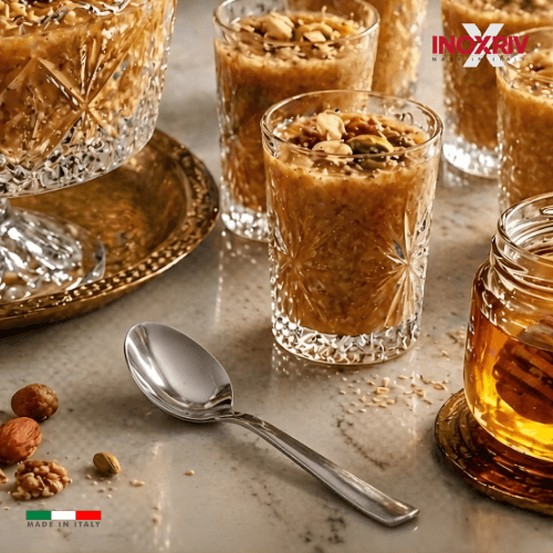 Les cuillères Zriz Hilton sont idéales pour servir le traditionnel Zriz tunisien. Leur design élégant et leur finition poli miroir apportent une touche moderne à votre table.